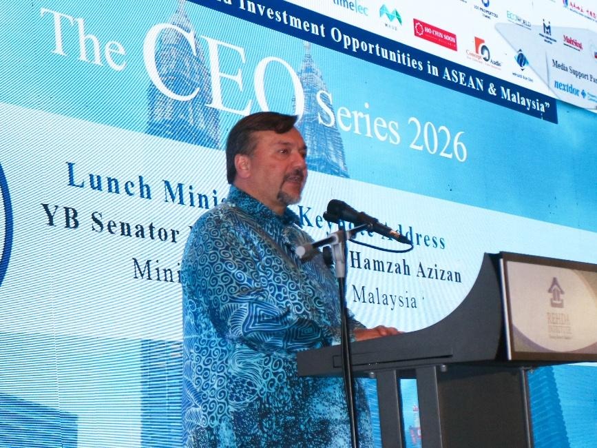 YB Senator Datuk Seri Amir Hamzah Azizan, Minister of Finance II delivering the Lunch Ministerial Keynote Address at REHDA Institute CEO Series 2026.