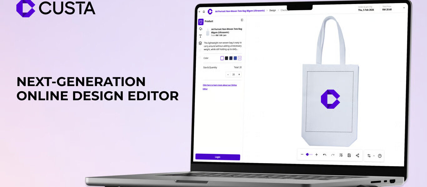 CUSTA empowers SMEs with unprecedented branding flexibility through its new editor, featuring automated cost optimization and a constraint-free online design canvas.